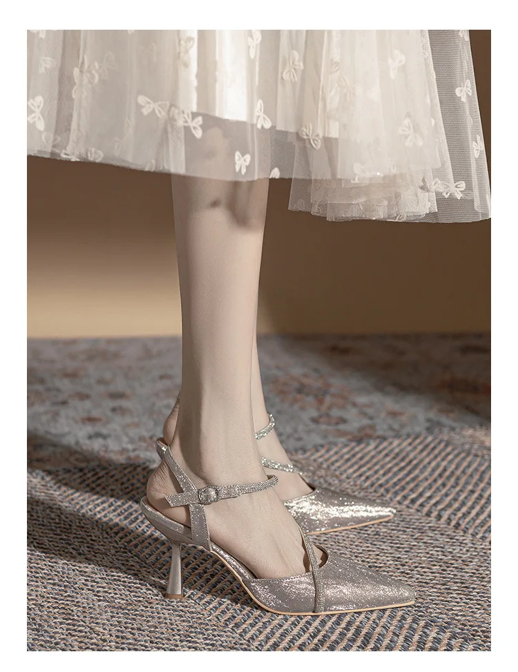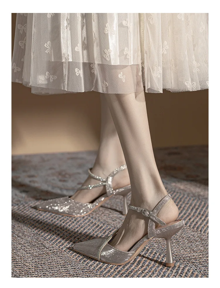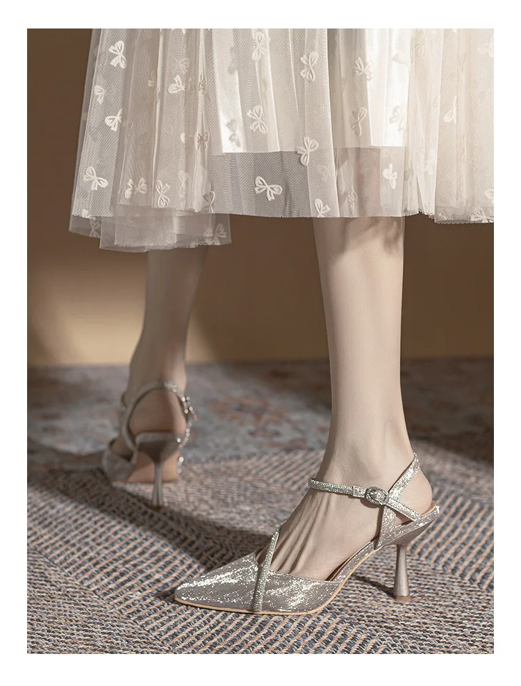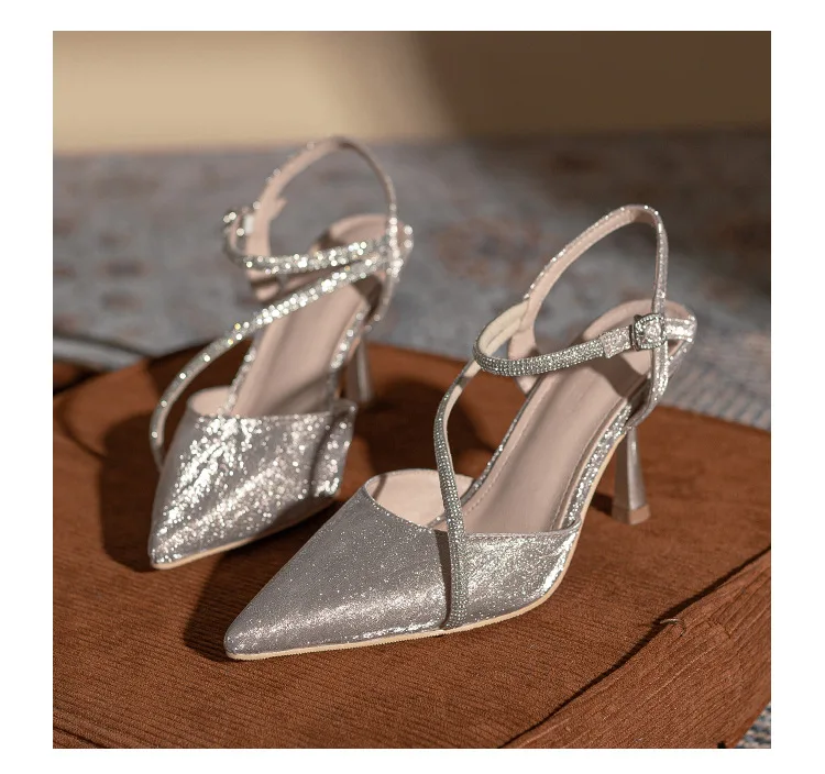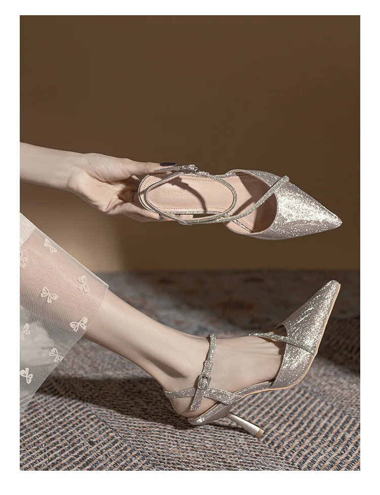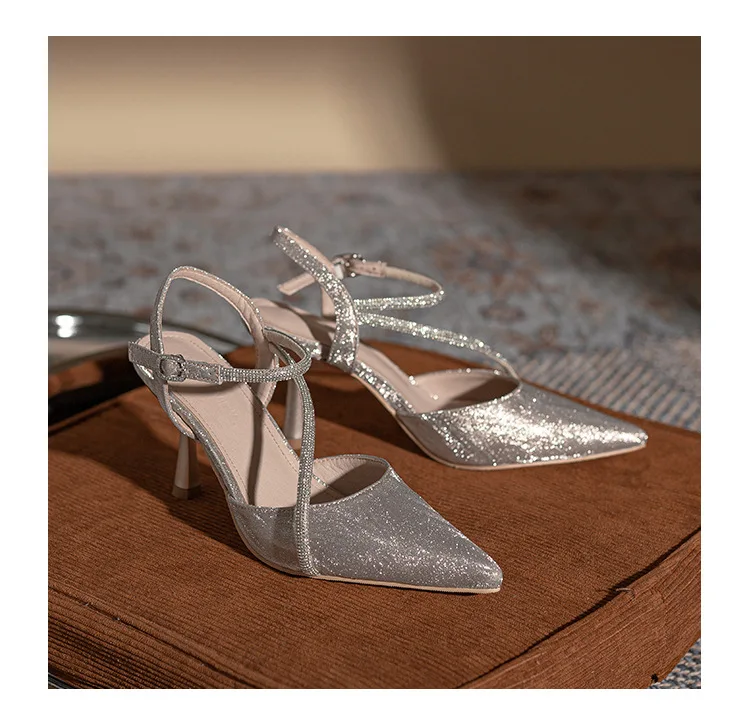 Gender: Female High-Attention Chemical Substances: None Heel Type: Stiletto Heel Fashion Element: Crystal Material: Sequined Fabric Color: Silver Size: 36-39 Closure Method: Hook And Loop..