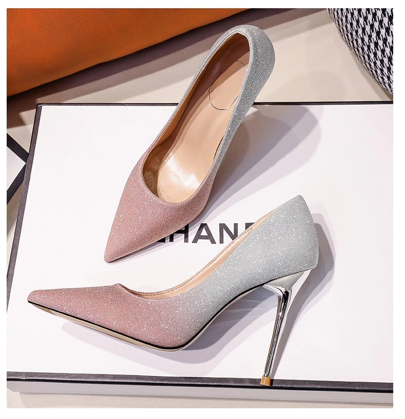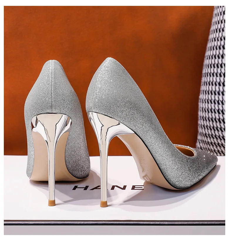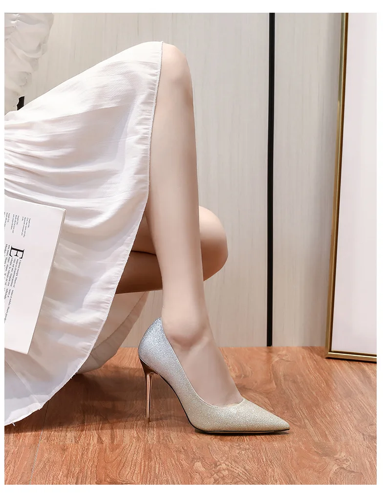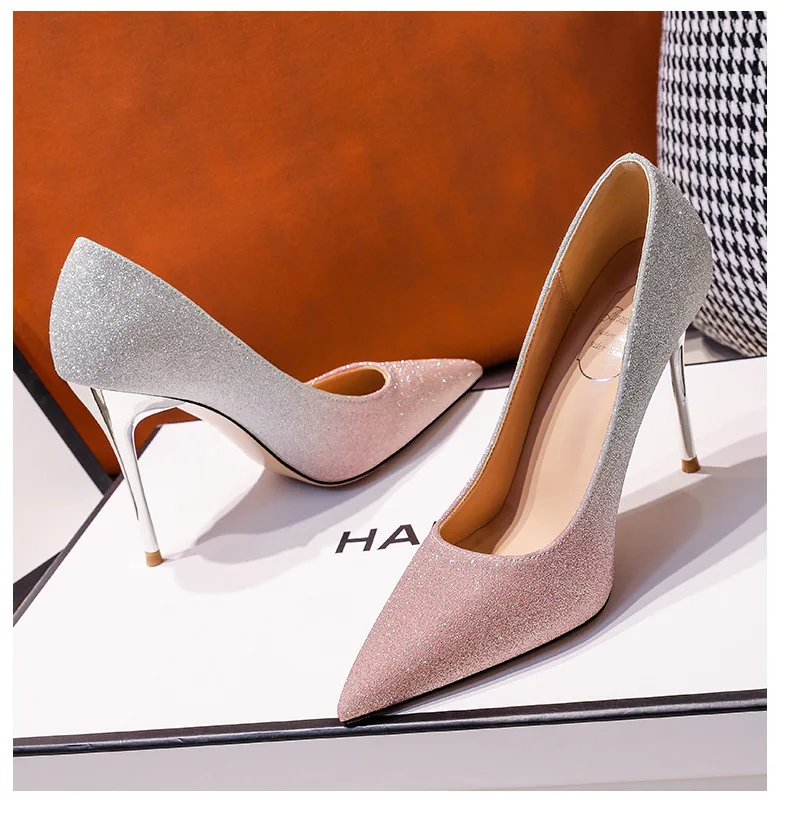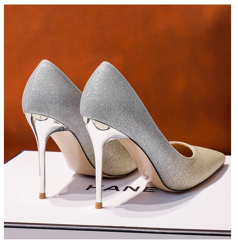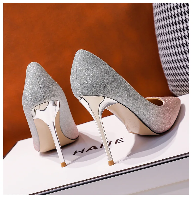 Gradient Sequined Bridal High Heels, Wedding Dress Stilettos, Evening Gowns, Women's Shoes