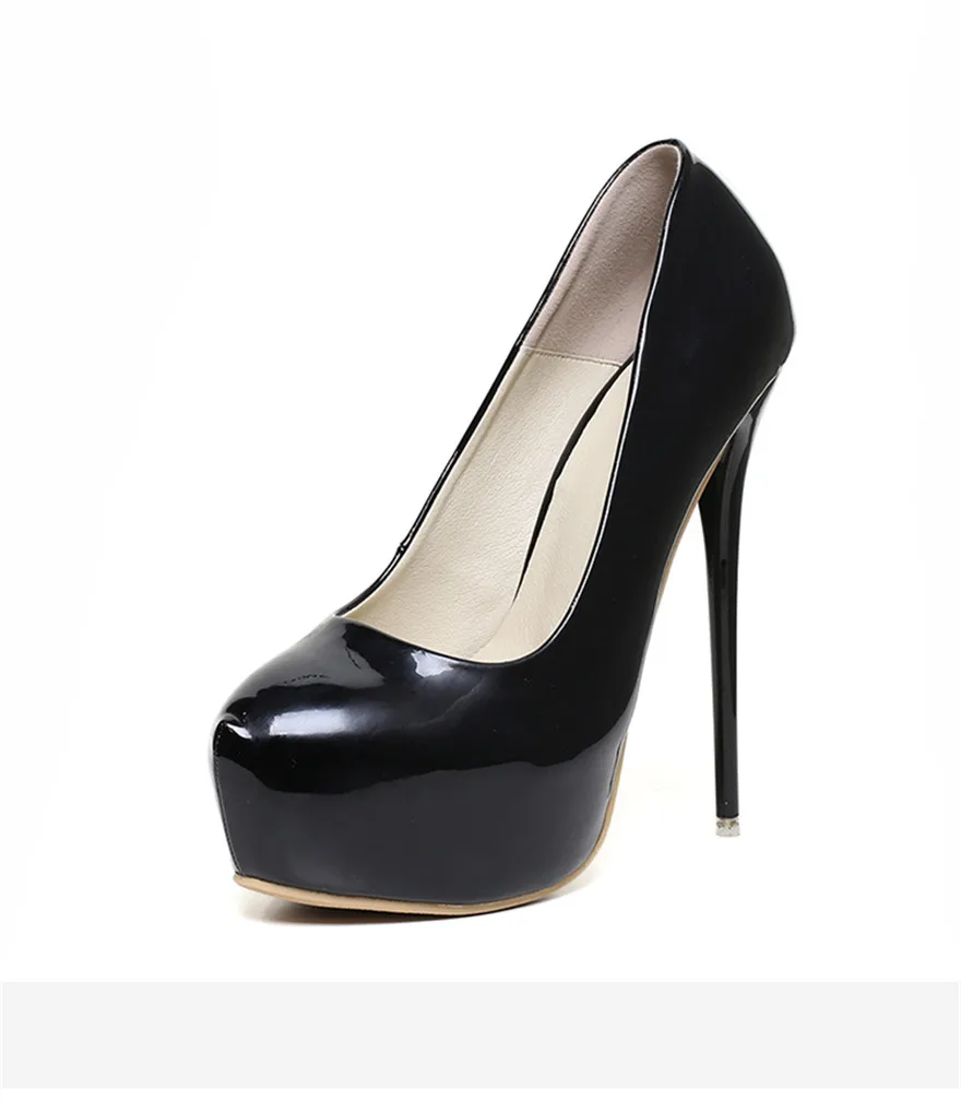 High-concerned Chemical:None Pattern Type:Solid Fashion Element:Platform Color:Black,White Size:36-41 Insole Material:PU Outsole Material:Rubber Upper Material:Patent Leather Heel Type:Thin Heels Heel Height:Super High (8CM - Up) Gender:Women ..