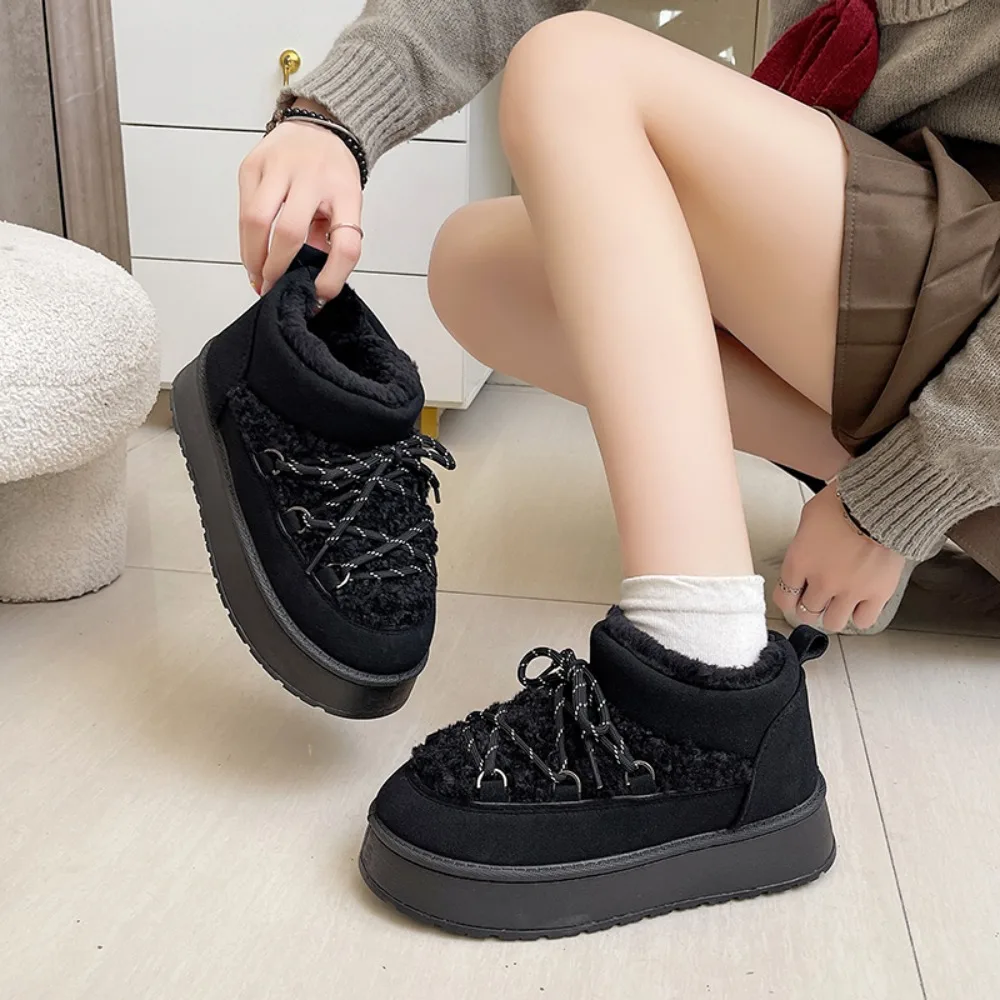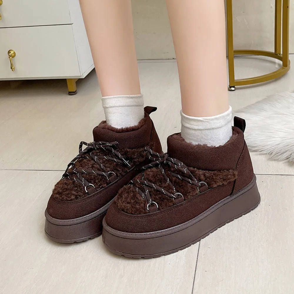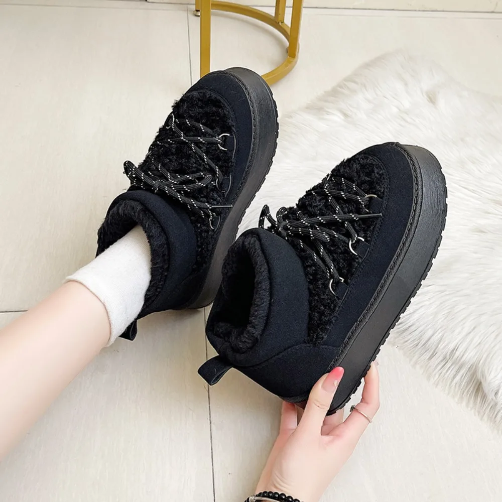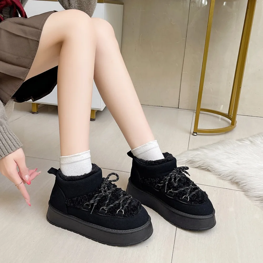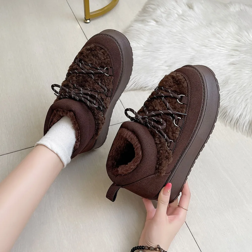 Women's Winter Thick Bottom Lace-Up Cotton Snow Boots Round Toe Comfortable Short Tube Fashionable Ankle Boots For Women