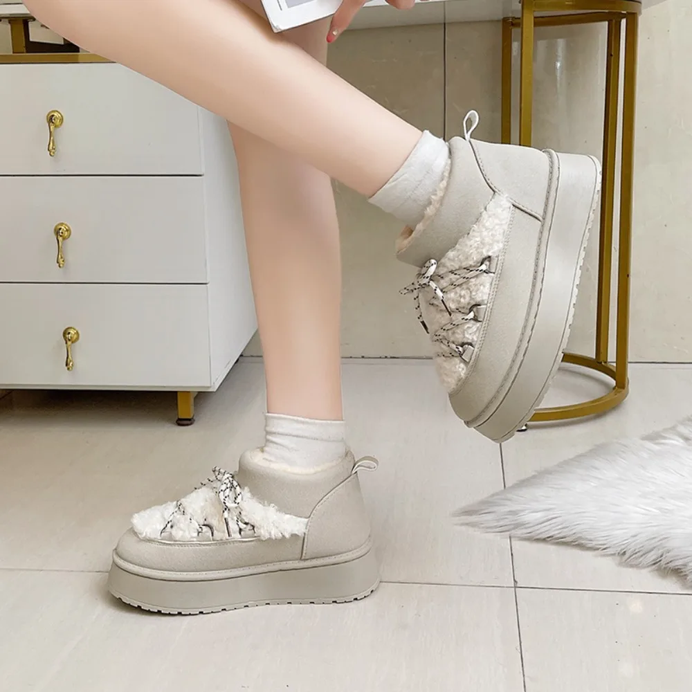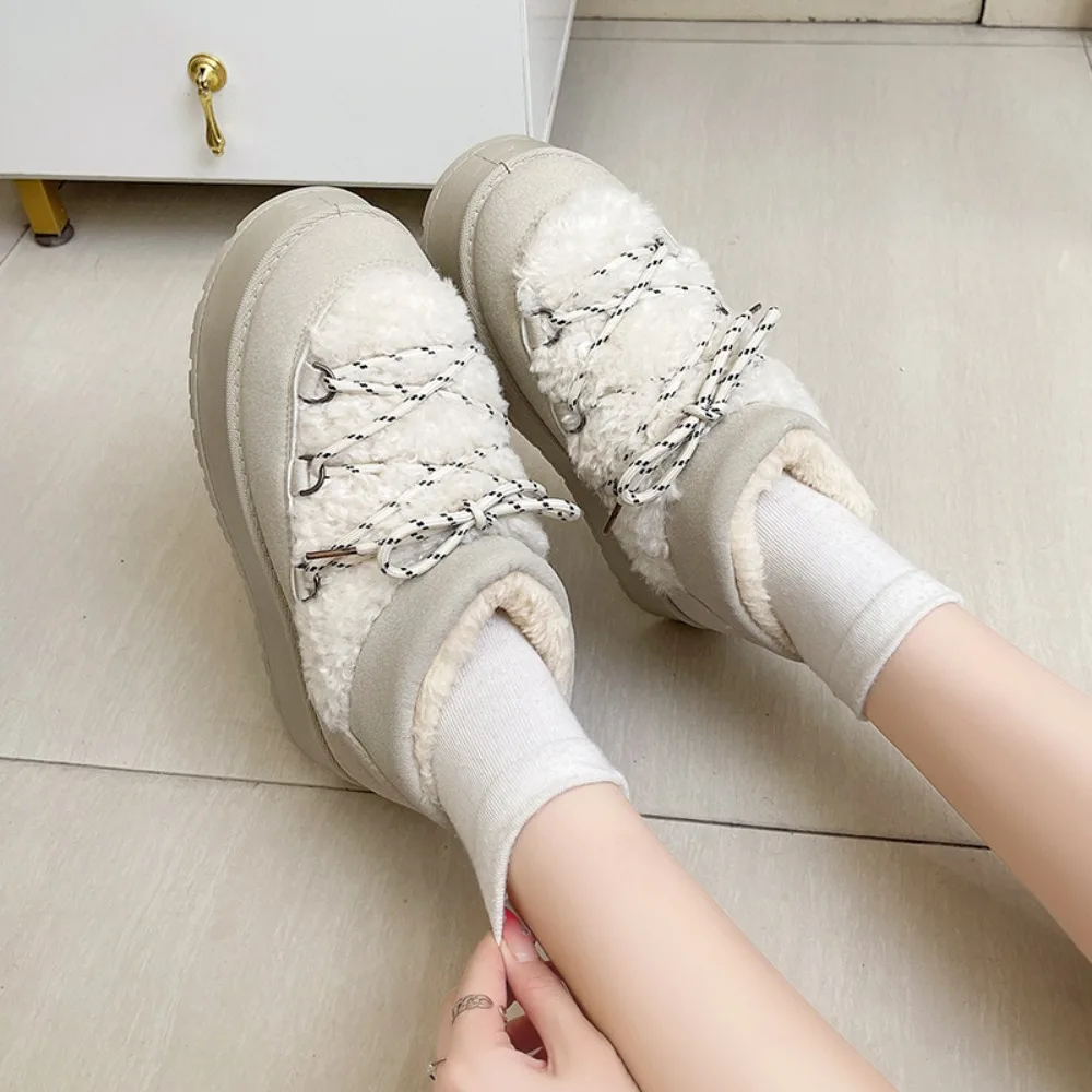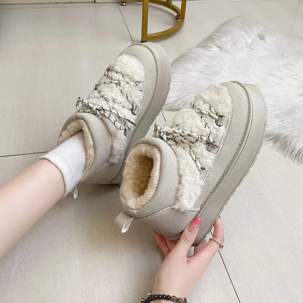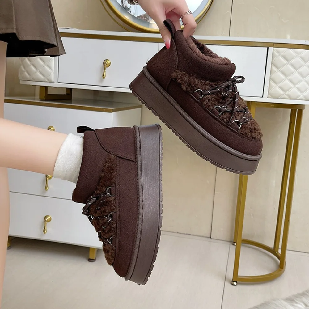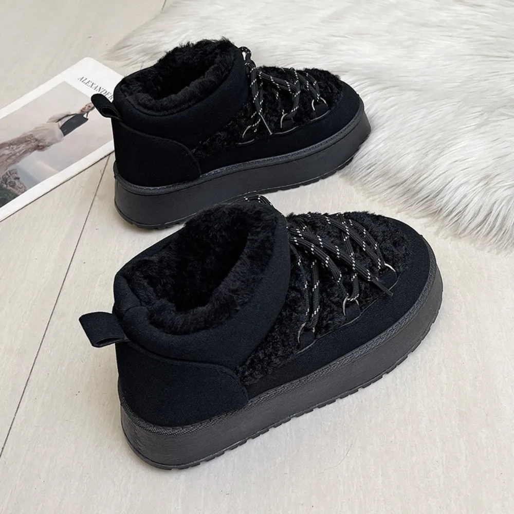 Women's Winter Thick Bottom Lace-Up Cotton Snow Boots Round Toe Comfortable Short Tube Fashionable Ankle Boots For Women