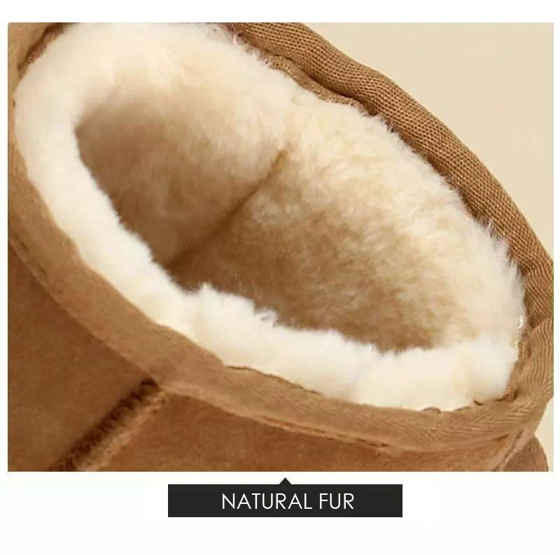 Winter Boots for Women Classic Snow Boots Waterproof Cow Suede Slip on Booties Natural Fur Lined Warm Comfortable Ankle Boots