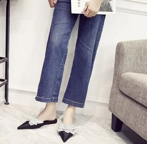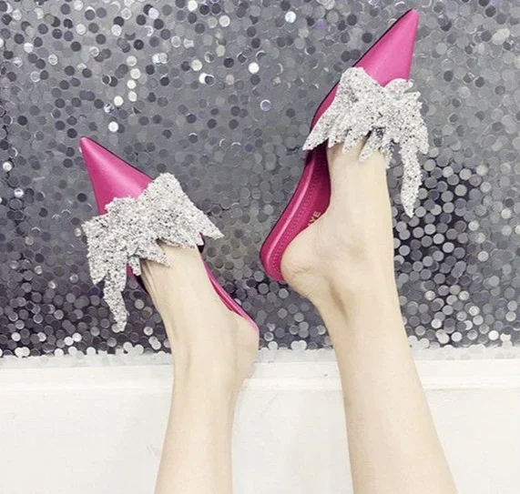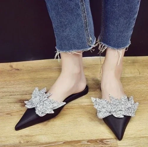 Sequins Women's Mule Slippers Pointed Toe Shoes