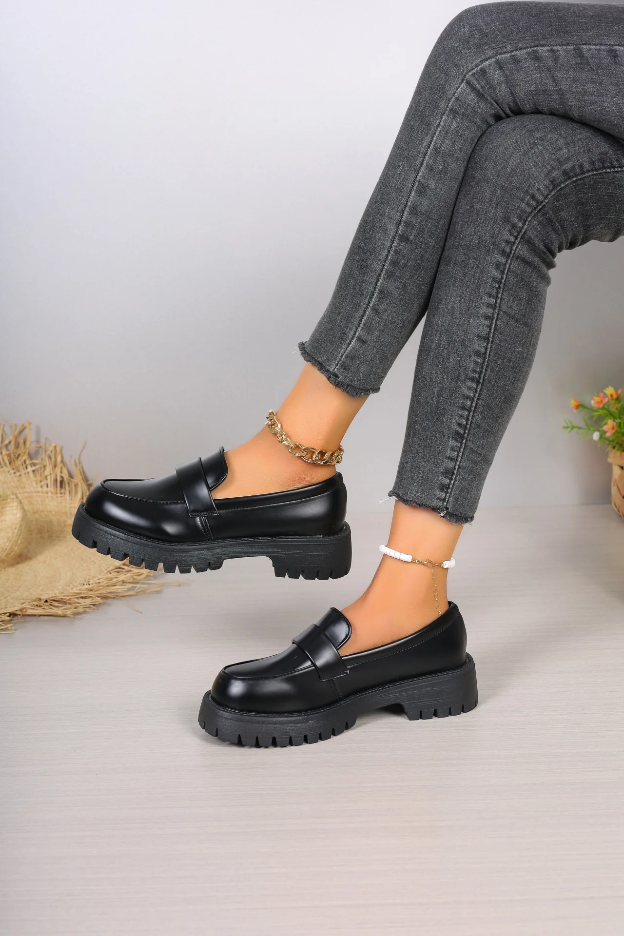 Loafers Women Round Toe Single Shoes Woman Thick Bottom