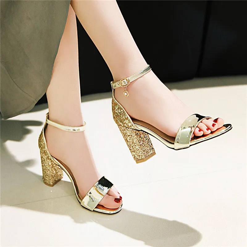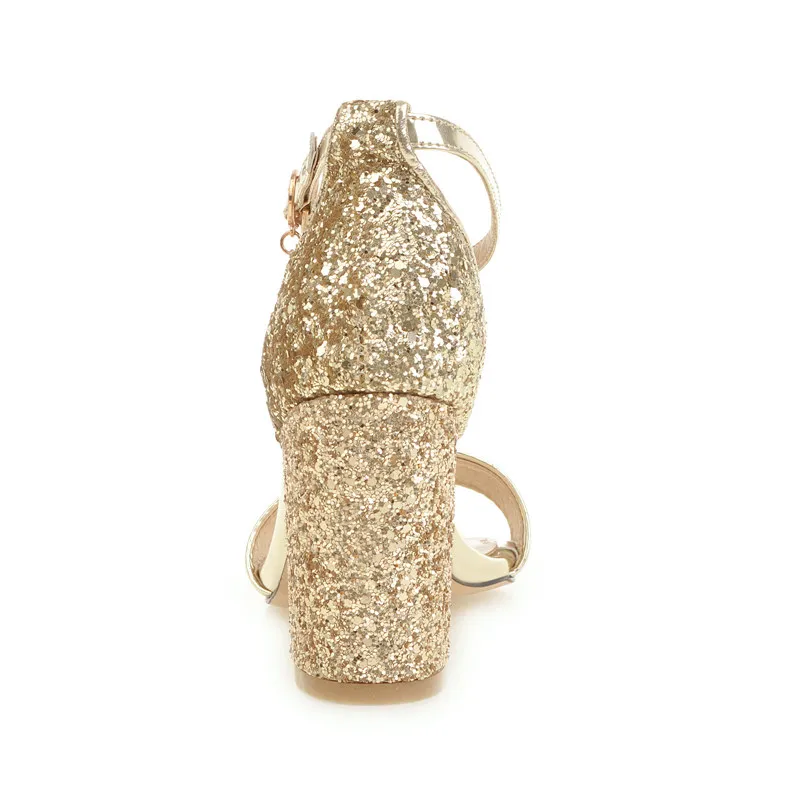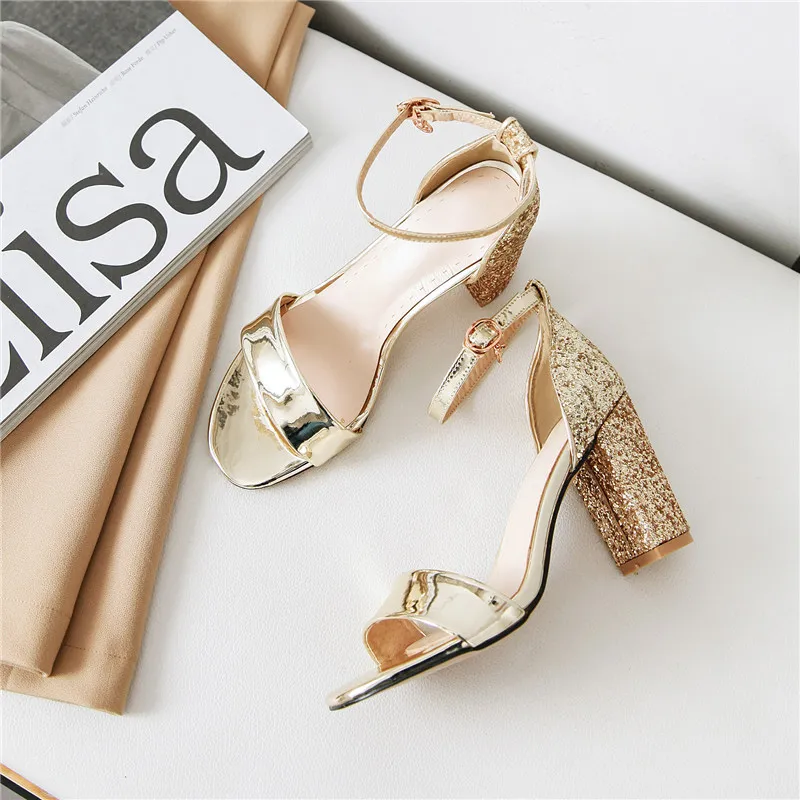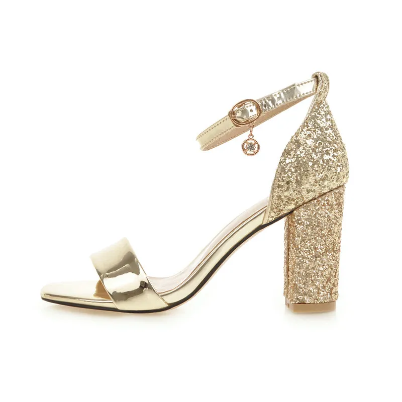 Gender: Female High-Attention Chemical Substances: None Heel Type: Block Heel Fashion Element: Crystal Style: Fashion Material: PU Color: Gold Size: 36-39..